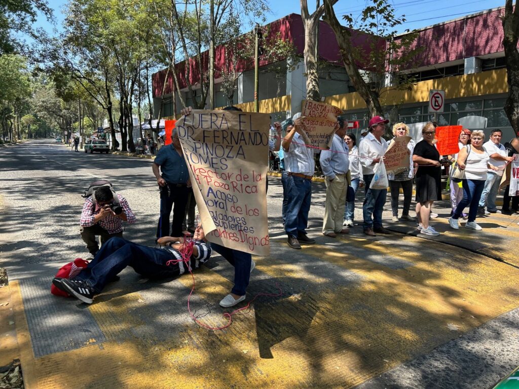 Trabajadores bloquean avenida frente al ISSSTE; denuncian discriminación y acoso laboral