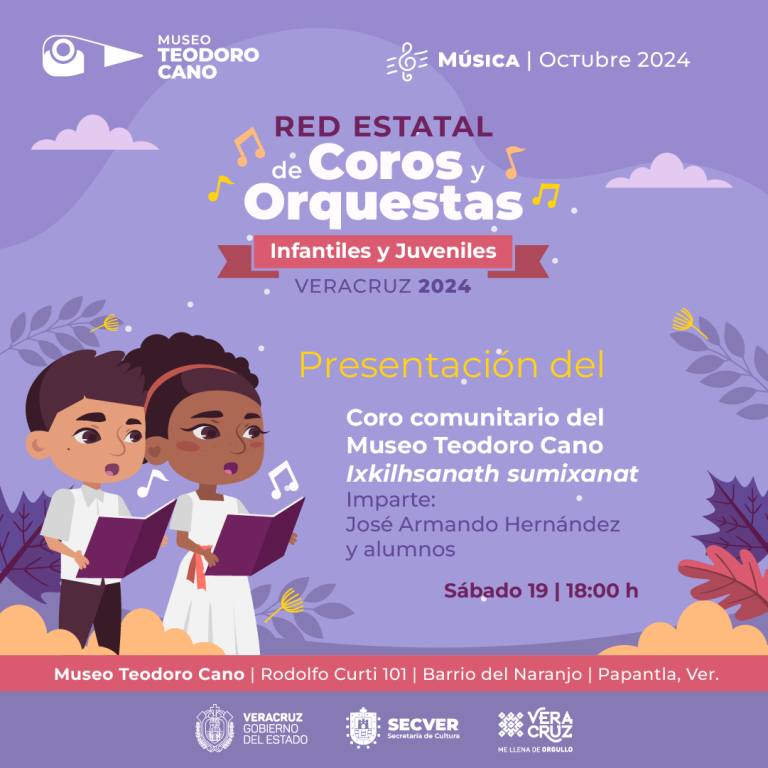 La Red Estatal de Coros y Orquestas Infantiles y Juveniles, con el Apoyo a Instituciones Estatales de Cultura (AIEC) 2024 de la Secretaría de Cultura federal, realizó el segundo período de talleres de Canto coral con sede en Papantla, cuyo objetivo fue propiciar espacios de sana convivencia e intercambio cultural donde la voz impulse el desarrollo artístico y humano de las infancias y juventudes.