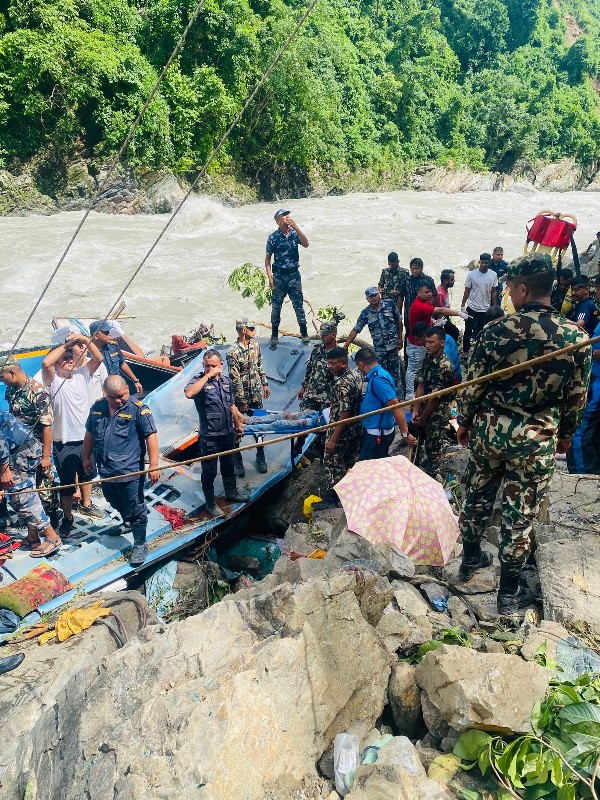 Los hechos ocurrieron, cuando un autobús de 43 pasajeros perdió el control cayendo al río Masyangdi, hundiéndose parcialmente, provocando la muerte de 27 personas indias y 16 heridos. Ante ello, elementos de emergencia trasladaron a los heridos a un hospital.
