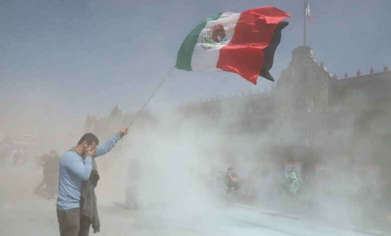 Algunos manifestantes intentaron aproximarse a las puertas de Palacio Nacional con la intención de derribarlas y entrar al edificio histórico, algo que no había ocurrido antes en una protesta reciente.