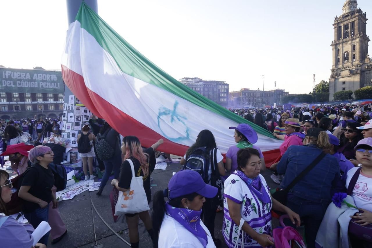 En el Zócalo, las 63 mil mujeres que se dieron cita según Google eart, izaron su propia bandera, porque el lábaro patrio monumental no fue izado.