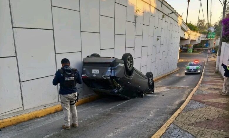 Abandona camioneta tras aparatosa volcadura en Circuito Presidentes de Xalapa
