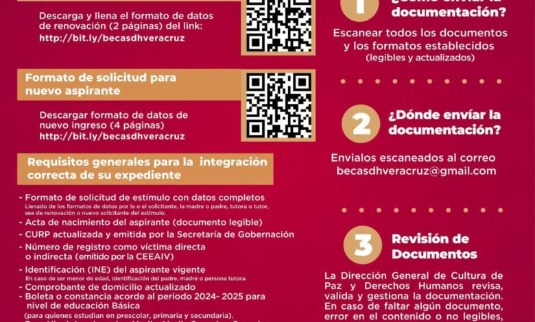 “La Dirección General de Cultura de Paz será la dependencia encargada de recibir, validar y gestionar el otorgamiento de estos estímulos ante la SEV”, dice la publicación en sus redes sociales.