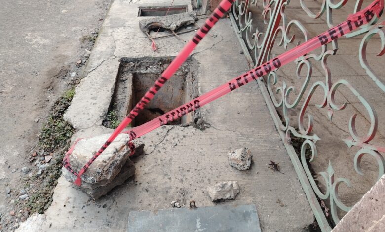 Advierten riesgo por tapa abierta en banqueta del centro de Xalapa