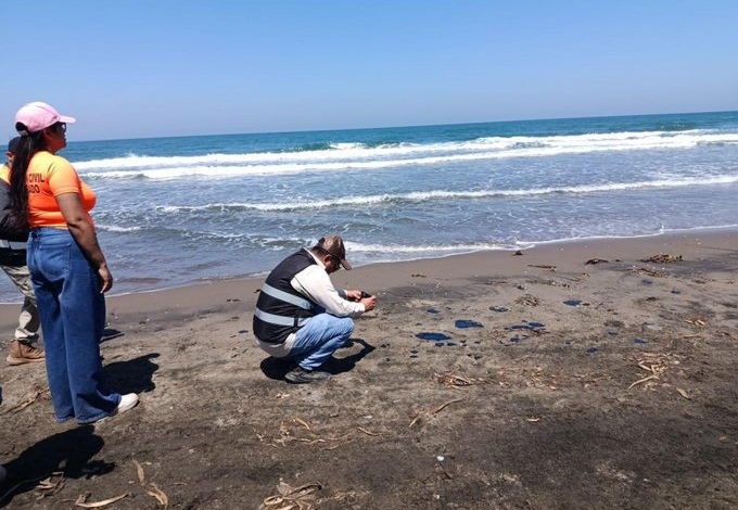 Se observó la presencia de material oleoso con características similares al hidrocarburo y manchas dispersas sobre la arena de entre 3 y 30 centímetros, aproximadamente. Además, se registró su presencia a lo largo de 3 kilómetros, de acuerdo con las autoridades locales.