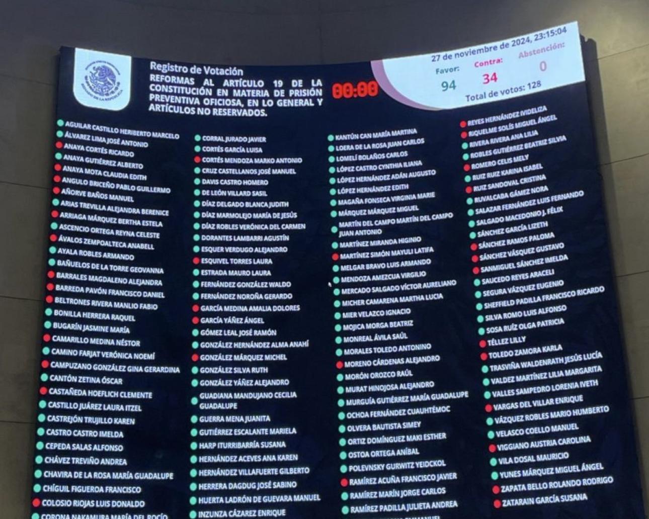 Las modificaciones al segundo párrafo del artículo 19 de la Carta Magna, fueron avaladas con 94 votos en pro y 34 en contra.