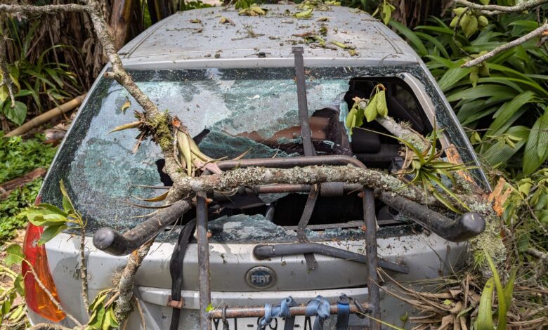 Los daños alcanzaron a su vehículo dado que una rama también se incrustó en el medallón que quedó perforado.