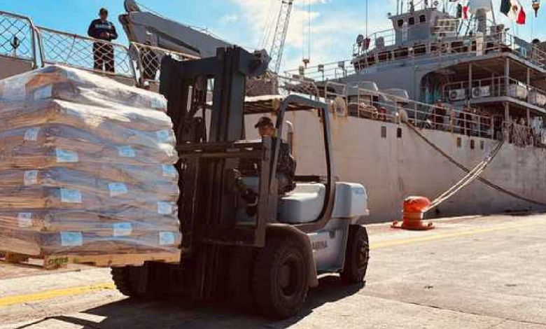 Los víveres, provenientes de la Región Naval Central, fueron concentrados en el muelle de la Administración del Sistema Portuario Nacional (Asipona) Veracruz, desde donde se realizó el embarque.