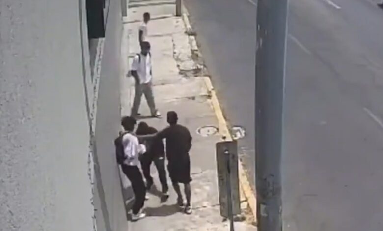 En el video, se observa a tres adolescentes que caminan en el Bulevar 5 de mayo, cerca del Motel Bulevar, cuando son interceptados por tres hombres, quienes los despojan de sus pertenencias.
