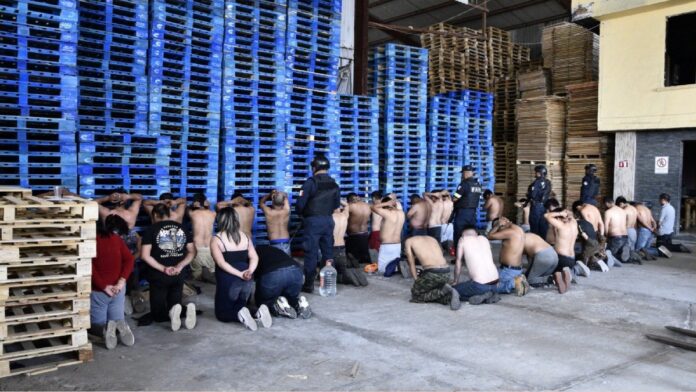 Los 42 detenidos, que incluyen 31 hombres, ocho mujeres y tres menores, fueron encontrados en la propiedad durante el cateo y fueron llevados a la agencia del Ministerio Público para verificar su identidad y situación legal.