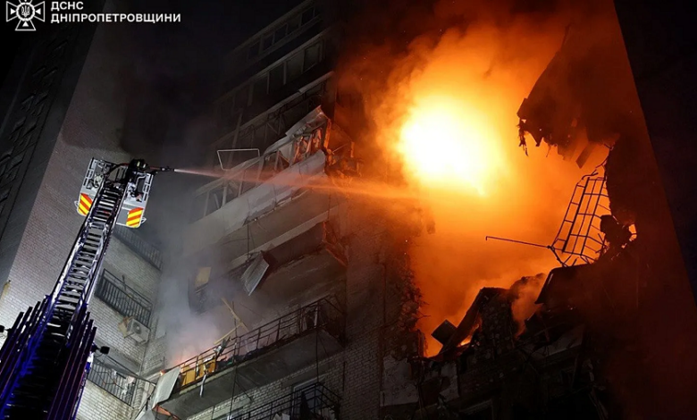 El jueves por la noche, fuerzas rusas atacaron la ciudad ucraniana de Dnipró. Los bombardeos con drones provocaron incendios en varios distritos y dañaron un edificio residencial de varias plantas.