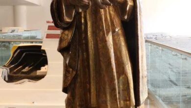 La imagen del siglo XVII, robada de la capilla de Santa Mónica, en Epazoyucan, Hidalgo, se presentó junto a otras…