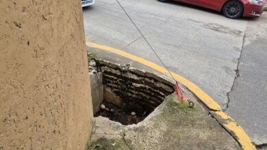 Piden a CMAS tapar hoyo en banqueta de colonia Santa Rosa