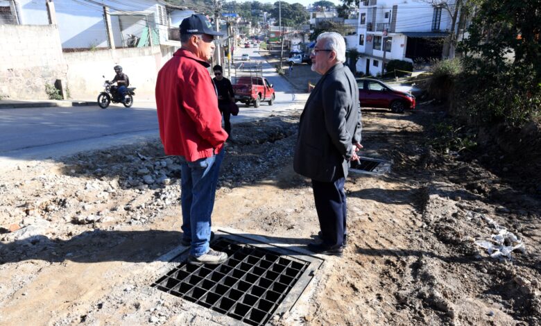Xalapa, Ver.- Con el propósito de verificar el funcionamiento y avance en el proceso constructivo, el alcalde Alberto Islas Reyes supervisó los trabajos del colector pluvial Camino al Sumidero.