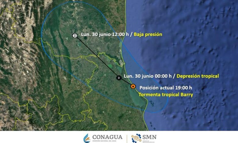 Se prevé que Barry se degrade a baja presión remanente en las próximas horas, afectando el norte de Veracruz, sur de Tamaulipas y oriente de San Luis Potosí, donde se mantendrá el potencial de lluvias intensas.