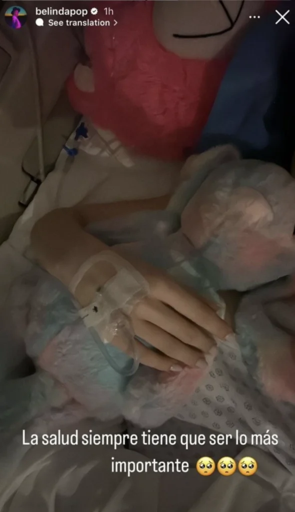 Fue a través de historias de Instagram que la cantante publico una fotografía, donde se puede ver que está canalizada y abrazada un oso de peluche, acompañado de un texto que decía «La salud siempre tiene que ser lo más importante».