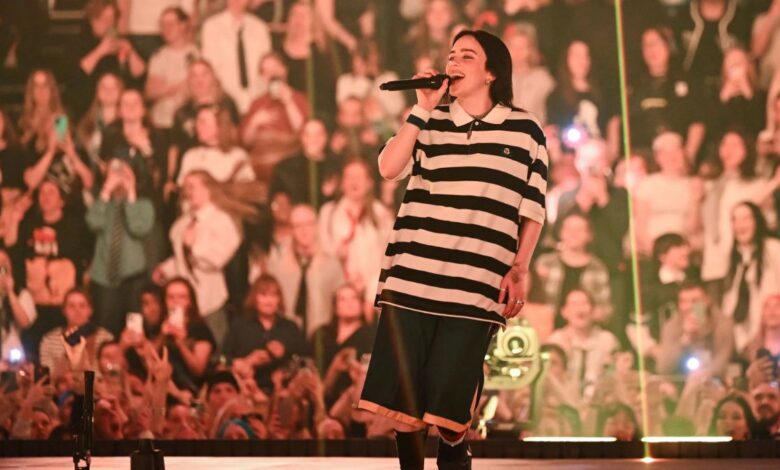 Billie Eilish mostró agradecimiento en el escenario, intercambió miradas de reconocimiento y dirigió un gesto de gratitud hacia quienes la auxiliaron, incluida la fan que la defendió.