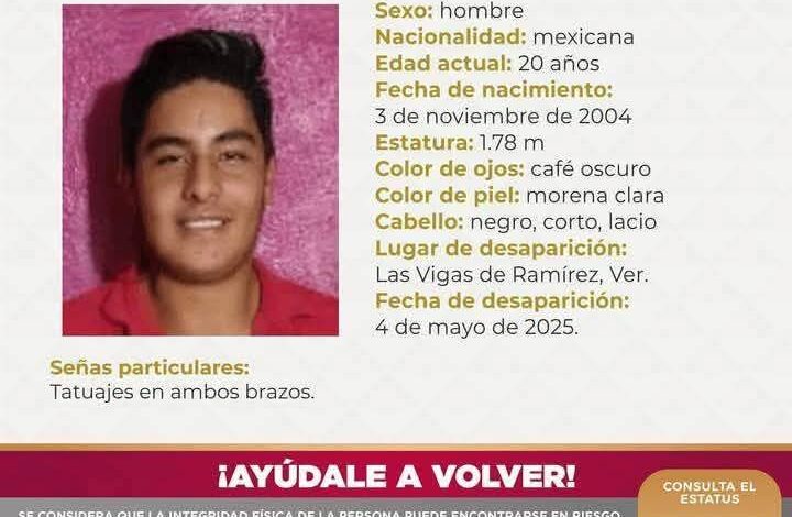 Las personas que tengan información sobre el paradero de Sergio pueden comunicarse a los números telefónicos 228 319 3187 o al 911.