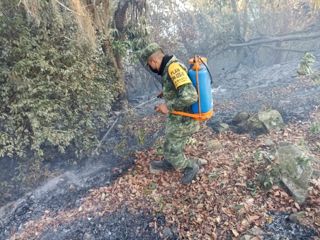 Brigadas de Veracruz continúan la atención conjunta con Puebla en incendio de Quimixtlán