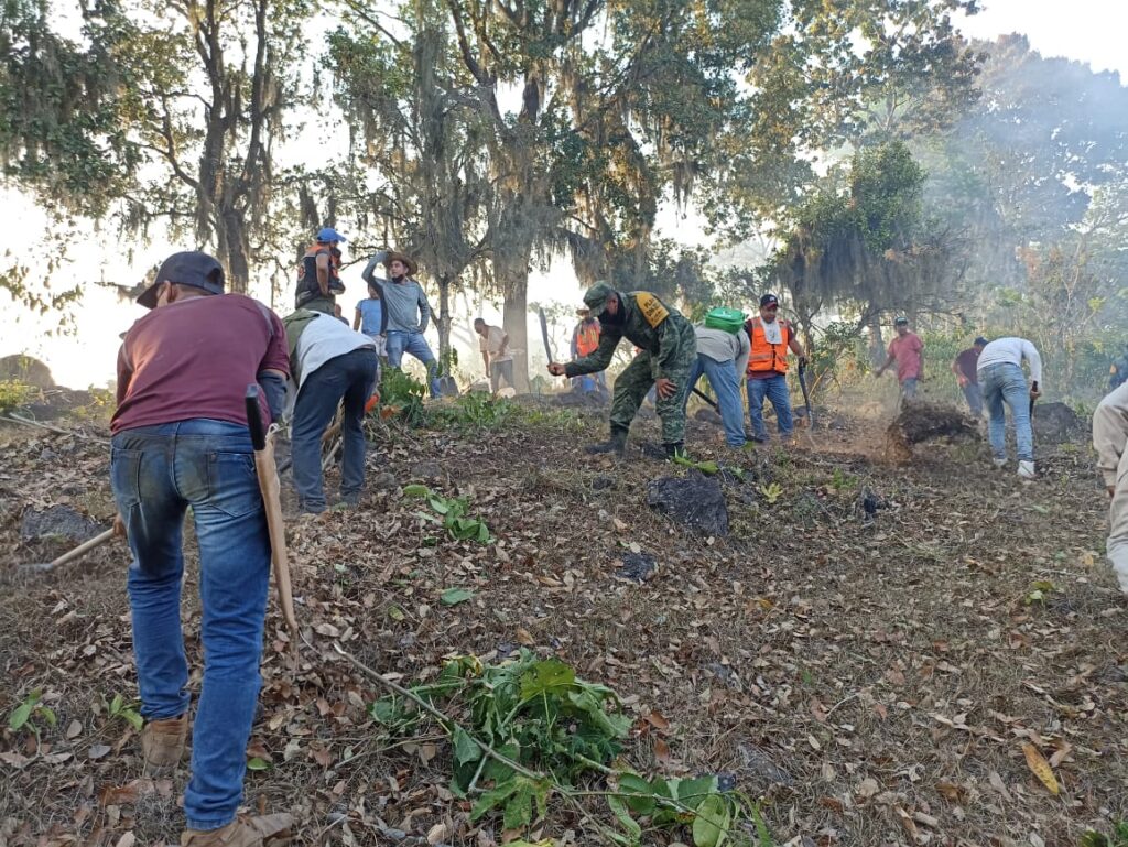 4 de junio de 2024, Ixhuacán de los Reyes, Ver.- Esta mañana reinician labores brigadistas de SEDEMA, PC Estatal y municipal, con brigadas BCM SEDEMA de Perote y Tatatila, que se encuentran desplegados en la zona de Barranca Grande para el combate junto a fuerzas de tarea del estado de Puebla al incendio forestal localizado en el municipio poblano de Quimixtlán, cerca de los límites con Ixhuacán de los Reyes.