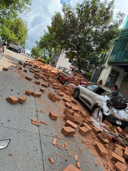 Hasta el momento, no se reportaron lesionados, no obstante, tres vehículos fueron dañados en el impacto, mientras que el material de construcción quedó regado, provocando un cierre vial en la zona.