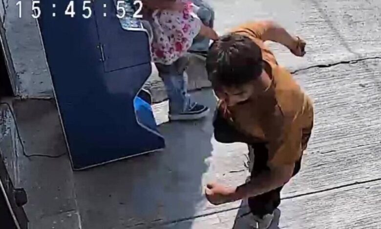 Por lo que se observa en el video, la niña jugaba tranquila con la máquina mientras cargaba a su hermana de tan sólo un año de edad, cuando de repente un hombre de pantalón negro y playera café se le acerca para hacerle tocamientos indebidos y tratar de subirle la playera para tocarle el torso.