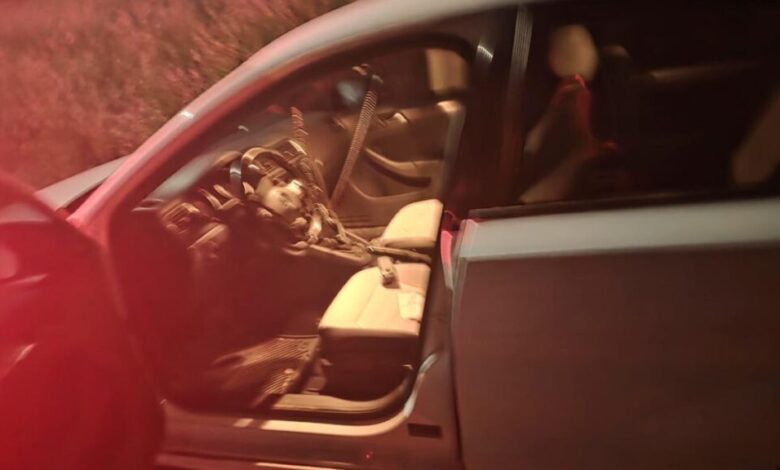 Al momento de la detención, los sujetos viajaban en un vehículo particular que portaba luces estroboscópicas azules y rojas instaladas en las crucetas delanteras y en el medallón trasero, simulando ser una unidad oficial.