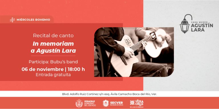 El miércoles 6 de noviembre, a las 18:00 horas, como parte del aniversario luctuoso del compositor Agustín Lara, Bubu´s Band presenta el Concierto In memoriam a Agustín Lara.