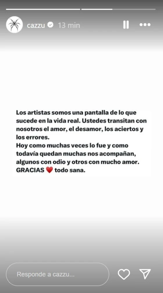 Por su parte, Cazzu retomó el mensaje de Nodal, pero también compartió su propio comunicado.