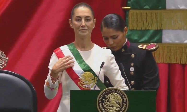 Siendo las 11:28 de la mañana la presidenta llego a la ceremonia, al rededor de las 11:30, Claudia Sheinbaum rindió protesta, donde le fue entregada la banda presidencial por el expresidente Andrés Manuel López Obrador a Ifigenia Martínez, quien posteriormente se la entrego a Claudia.