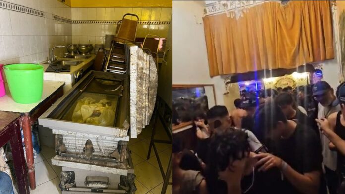 El operativo, realizado tras múltiples denuncias vecinales, halló ataúdes usados como hieleras, exceso de alcohol, extintores caducos desde 1999 y ausencia total de rutas de evacuación en el salón Unión y Concordia, ubicado en Magnolia 174.