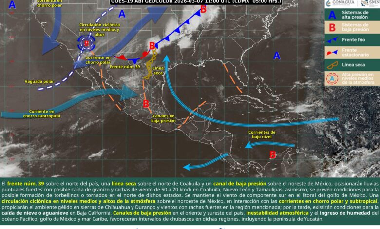 El SMN también prevé viento del sur y sureste de 10 a 20 kilómetros por hora, con rachas de 30 a 50 km/h, especialmente en zonas costeras. Estas condiciones forman parte del fenómeno conocido como “surada”, común en la región del Golfo de México.