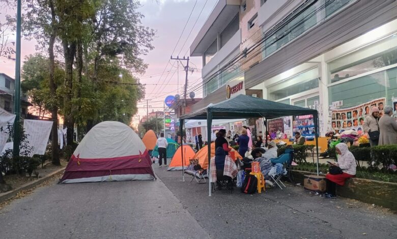 Juan David Castilla/Xalapa. Integrantes de colectivos de familiares de personas desaparecidas cumplen más de 24 horas en protesta frente a las instalaciones de la Comisión Estatal de Atención Integral a Víctimas (CEEAIV), ubicadas en la avenida Américas. La principal demanda de los manifestantes es la renuncia inmediata de la comisionada Namiko Matzumoto.