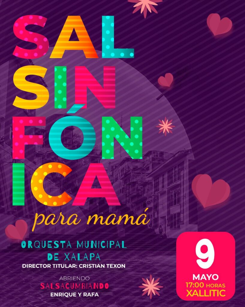 Xalapa, Ver.- Este jueves 9 de mayo, a las 17:00 horas, la Orquesta Municipal de Xalapa (OMX) pondrá a bailar a las madres en su día, con el concierto gratuito “Salsinfónica para Mamá”, que se desarrollará en el Barrio Mágico de Xallitic.