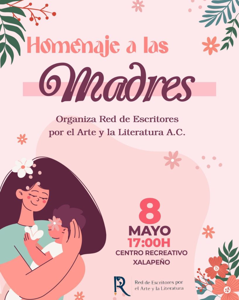 El miércoles 8 de mayo a las 17:00 horas, en el CRX, la Red Xalapeña por el Arte y la Literatura realizarán un “Homenaje a las Madres”, y a las 19:00 horas, Rolando Uscanga dirigirá una tertulia en honor a las madres xalapeñas.