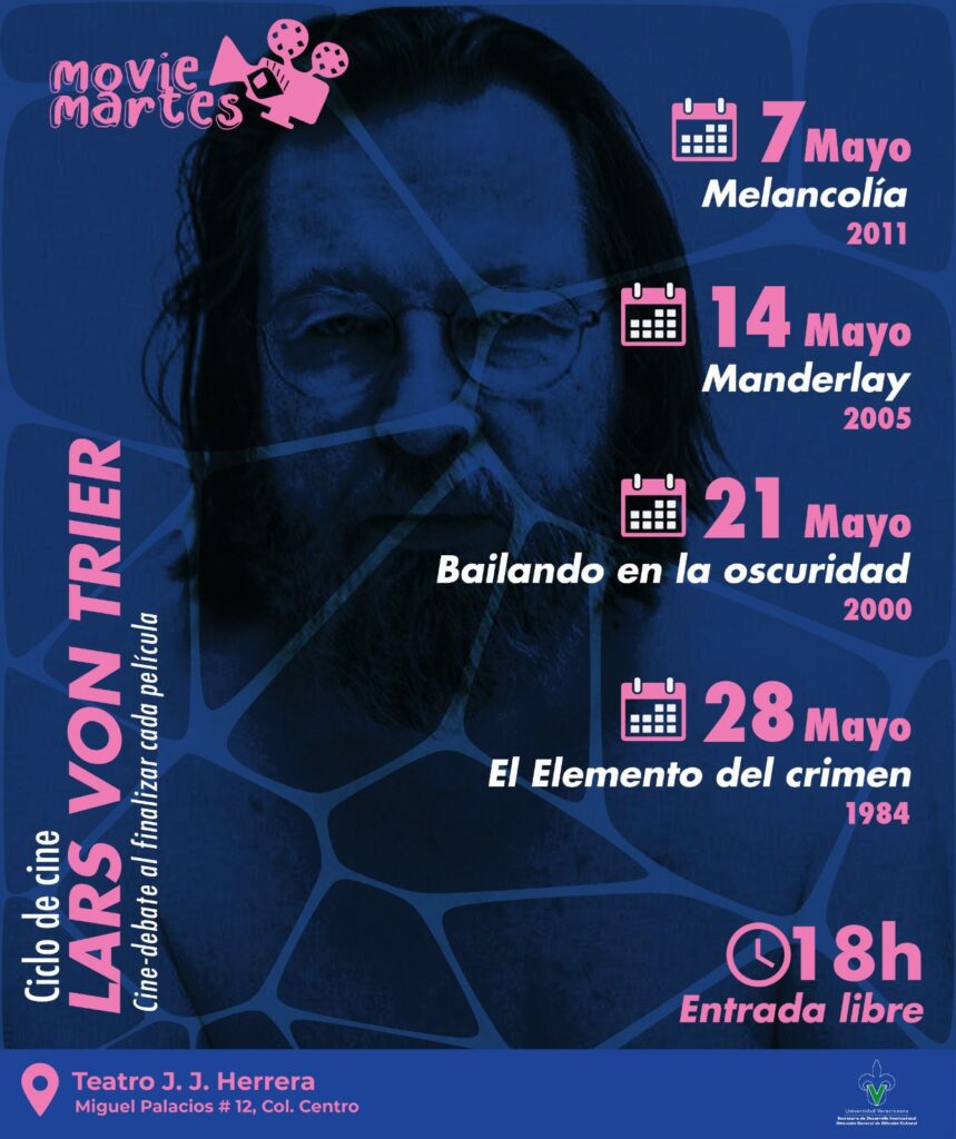 En el Teatro J.J. Herrera, este martes a las 18:00 horas, se proyectará la película “Melancolía” (2011), como parte del Ciclo de Cine “Lars Von Trier”. En paralelo, Guadalupe Williams Linera encabezará la conferencia “El Bosque delentorno”, en el Museo Casa de Xalapa, y a las 19:00 horas en el Centro Recreativo Xalapeño (CRX) se exhibirá el filme “El Carretón del desierto”.