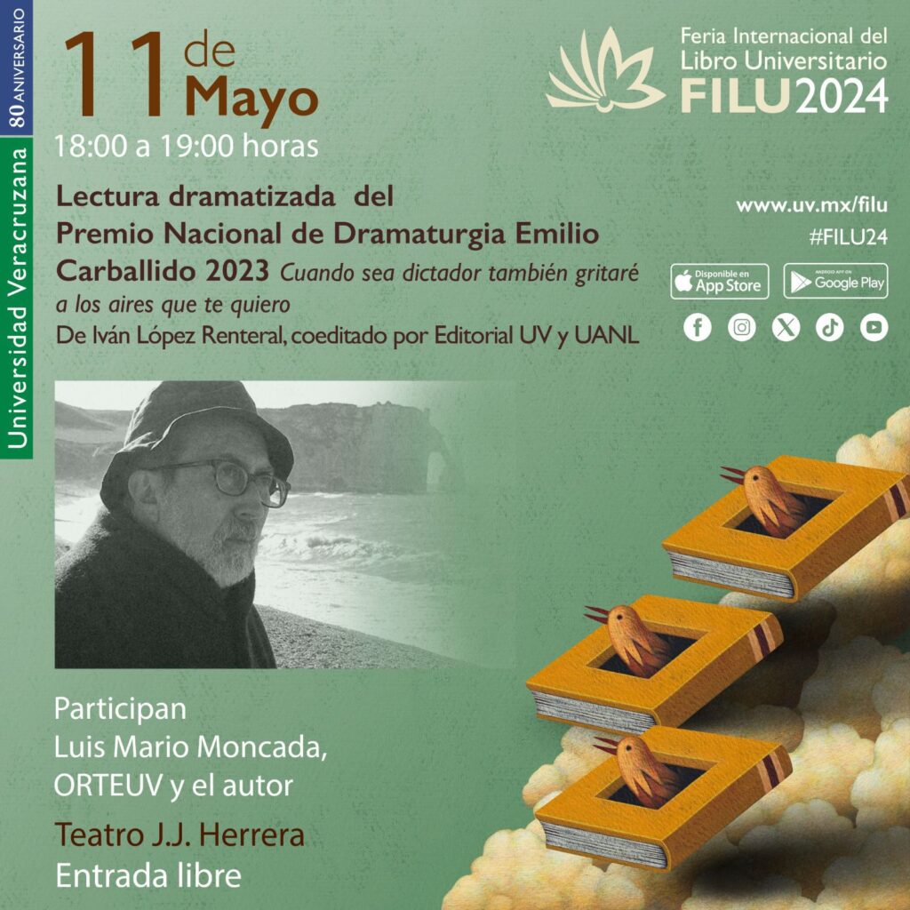 En el Teatro J.J. Herrera, como parte de la Feria Internacional del Libro Universitario (FILU), a las 17:00 horas, Claudia Paz Román presentará el libro “La mirada escénica”; a las 18:00 horas, será la lectura dramatizada del Premio Nacional de Dramaturgia Emilio Carballido, y a las 19:30 horas, la Facultad de Danza de la Universidad Veracruzana (UV) desarrollará el espectáculo “Del otro lado”.