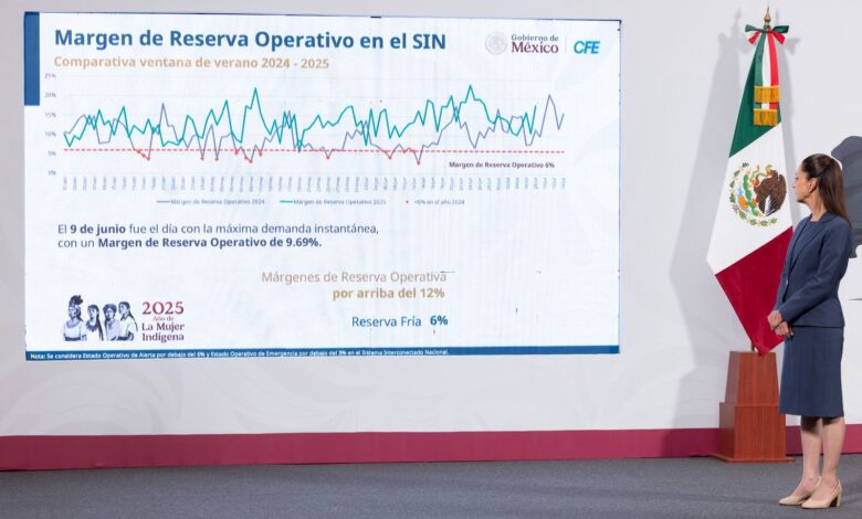 “En reserva de generación operativa estamos ya por arriba del 12% (en fría 6%) para eliminar riesgo de apagones en todo el país”. Abundó la titular de Energía.