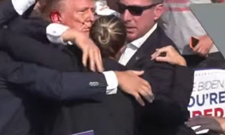 Trump daba un discurso en Pensilvania cuando se escucharon disparos y al tocarse la oreja derecha y ver sangre, se tiró al suelo para ser inmediatamente protegido por el Servicio Secreto y ser sacado del lugar para ser llevado a un hospital cercano donde se corroboró que solo fue un rozón de bala.