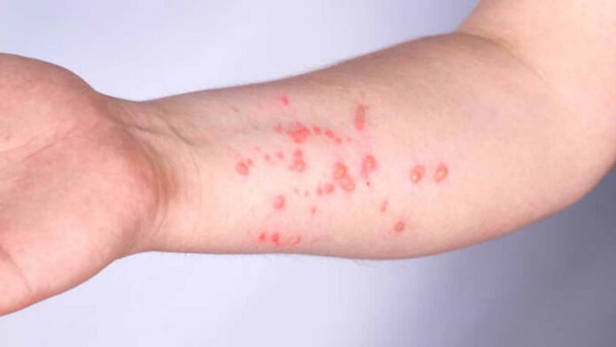 La enfermedad tiene un periodo de incubación de 5 a 21 días. El número de lesiones en una persona puede oscilar entre unos pocos y varias decenas. La erupción suele concentrarse en la cara, las palmas de las manos y las plantas de los pies. También pueden aparecer en la boca, los genitales y los ojos.