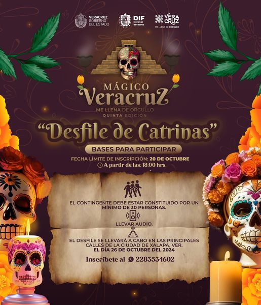 Es por ello, que podrán inscribirse hasta el 19 de octubre del año en curso. El desfile se llevará a cabo el próximo 26 de octubre en las principales calles de la ciudad de Xalapa.