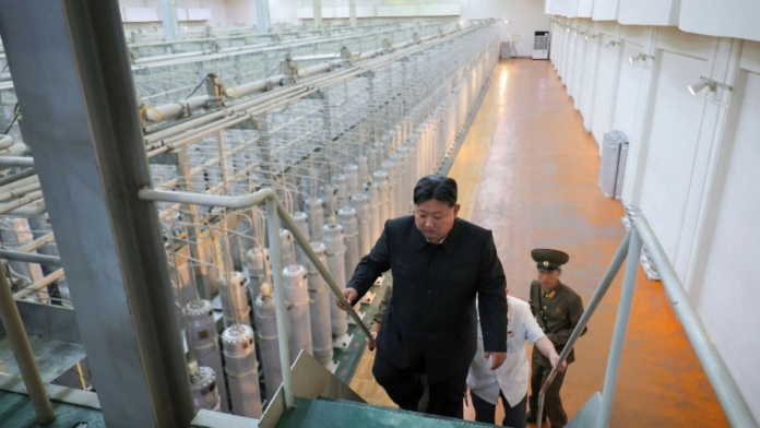 En las fotografías se puede ver a Kim Jong-Un “inspeccionando” las instalaciones repletas de centrifugadoras y tubos de color gris, además de que se puede ver acompañado de funcionarios militares y científicos.