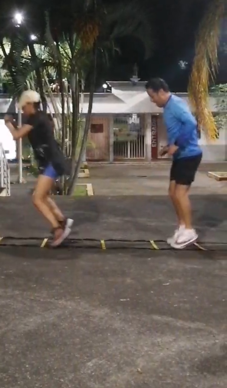 Los atletas fueron captados en videos mientras se ejercitan sobre la banqueta, al exterior del estadio mencionado.