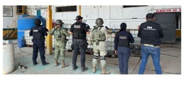 También, se aseguraron 64 envoltorios de sustancia color rosa; cuatro básculas grameras; cuatro paquetes de bolsas de material sintético y un arma de fuego corta, y se detuvo a José Manuel “N”, Benjamín “N”, Sergio “N”; Carlos “N” y Cristian “N”.