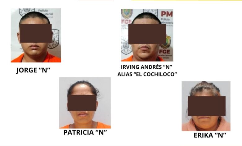 La Fiscalía General del Estado (FGE) informó que se trata de Jorge “N”, Irving Andrés “N” alias “El Cochiloco”, Patricia “N” y Erika “N”, quienes supuestamente participaron en los hechos mencionados.
