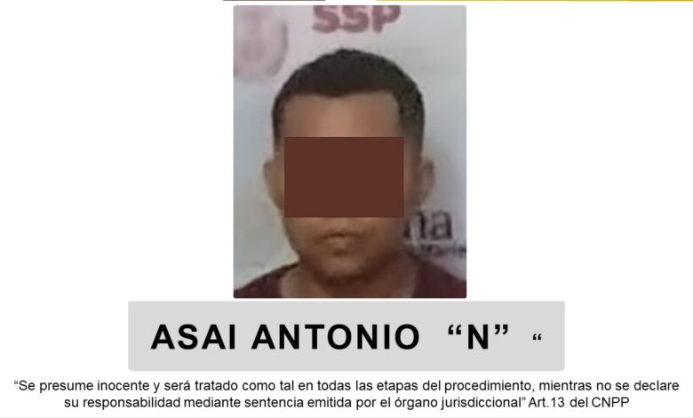 Acayucan, Ver., a 29 de mayo 2025.- La Fiscalía General del Estado informa que, elementos de la Policía Ministerial en coordinación con Fuerzas Federales y estatales, cumplimentaron una orden de aprehensión en la localidad Villa Alta, perteneciente al municipio de Texistepec, emitida por un juez de control con sede en este distrito, en contra de Asai Antonio “N” como probable responsable de los delitos de homicidio doloso calificado cometido en agravio de las víctimas identificadas con las iniciales Y. L. G., A. N. R., M. A. N. L., S. M. D., y M. N. A., y lesiones dolosas calificadas cometido en agravio de las víctimas identificadas con las iniciales A. T. Q., y B. E. M. F. En la detención le fue asegurada un arma de fuego y una motocicleta.