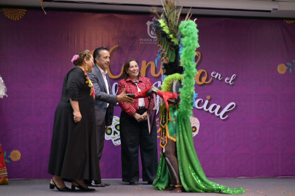 Al asistir como invitada especial a la muestra del altar de muertos, este año de la región de Papantla, así como el concurso y desfile de catrinas en la sede del Poder Judicial en esta ciudad capital, Nahle García, admiró los vestuarios alusivos a cada región del país y del estado, producidos con gran amor a nuestras raíces.