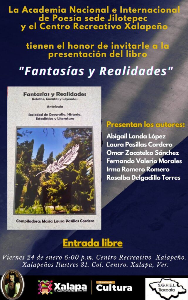 -Presentación del libro «Fantasías y Realidades». Por María Laura Pasillas Cordero, el 24 de enero a las 16:00 horas.