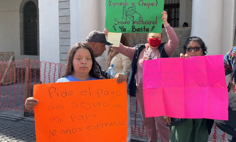 Los quejosos bloquearon la calle Juan de la Luz Enríquez, poco antes de las nueve de la mañana para reclamar a las autoridades estatales que se atienda el problema de los seguros institucionales estatales y federales que no se han pagado a los beneficiarios.