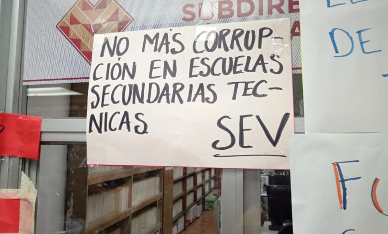 “No más vicios y corrupción en la SEV”, “Respeto a las propuestas seccionales” y “Devuelve la plaza que te asignaste, Luis Ordaz”, se leía en sus mensajes.